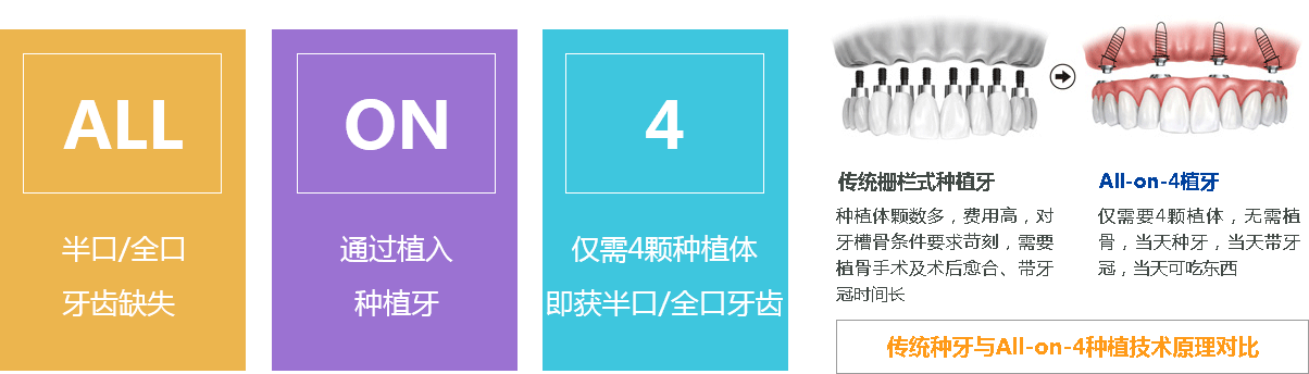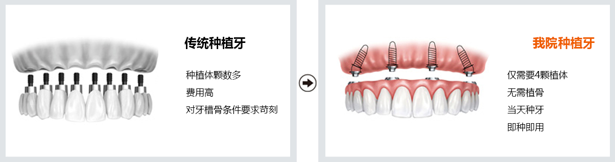 传统半口种植牙至少需要安装6颗或以上种植体,而All-on-4种植技术半口只需4颗种植体,更值更划算。